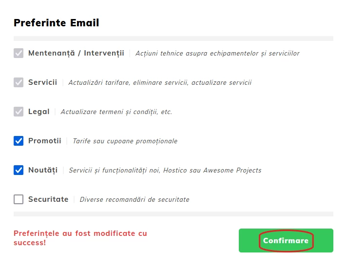 Frissítse a Hostico-fiókjában az e-mailbeállításokat, hogy személyre szabott értesítéseket kapjon karbantartásról, szolgáltatásokról, promóciókról és biztonságról.