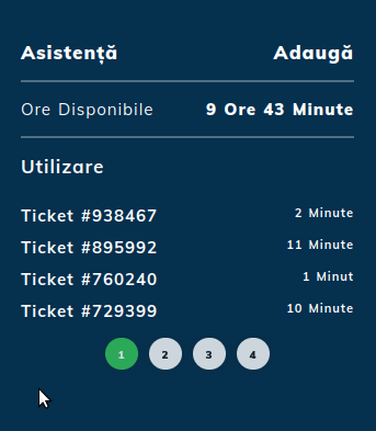 - Még mindig azon az oldalon, ahol vagyunk, van egy másik ablak, amely különböző műveletekhez felhasznált támogatási órákat számol. A felületen láthatod, hogy minden egyes egyedi kérelemhez nyitott támogatási jegy tartozik a fiókban, amely tartalmazza a számlázott eljárásra vonatkozó információkat, valamint a fennmaradó támogatási órákat.
