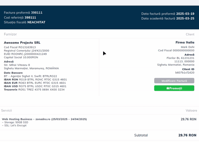 • Legyen aktív ügyfél fiókja a Hostico platformján (kötelező a proforma számlákon lévő kuponok használatához).