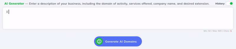 Miután elégedett a kész leírással, nyomja meg a „„Mesterséges intelligenciával készült domainok generálása” gombot a kérés benyújtásához.