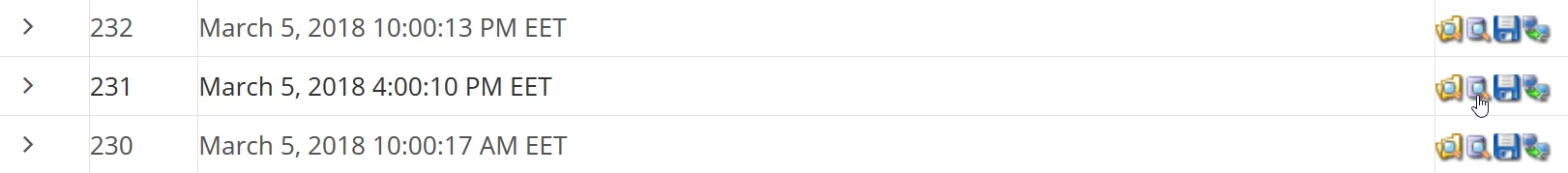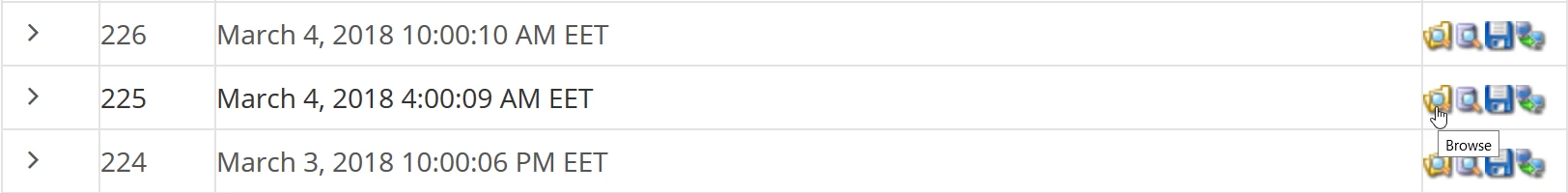 - A kiválasztott időszakból mentett adatbázisok megtekintéséhez kattintsunk a ">" nyílra.