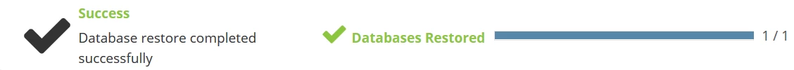 - A helyreállítási idő a adatbázis méretétől függ. A befejezést követően egy sikerüzenetet fogunk kapni.